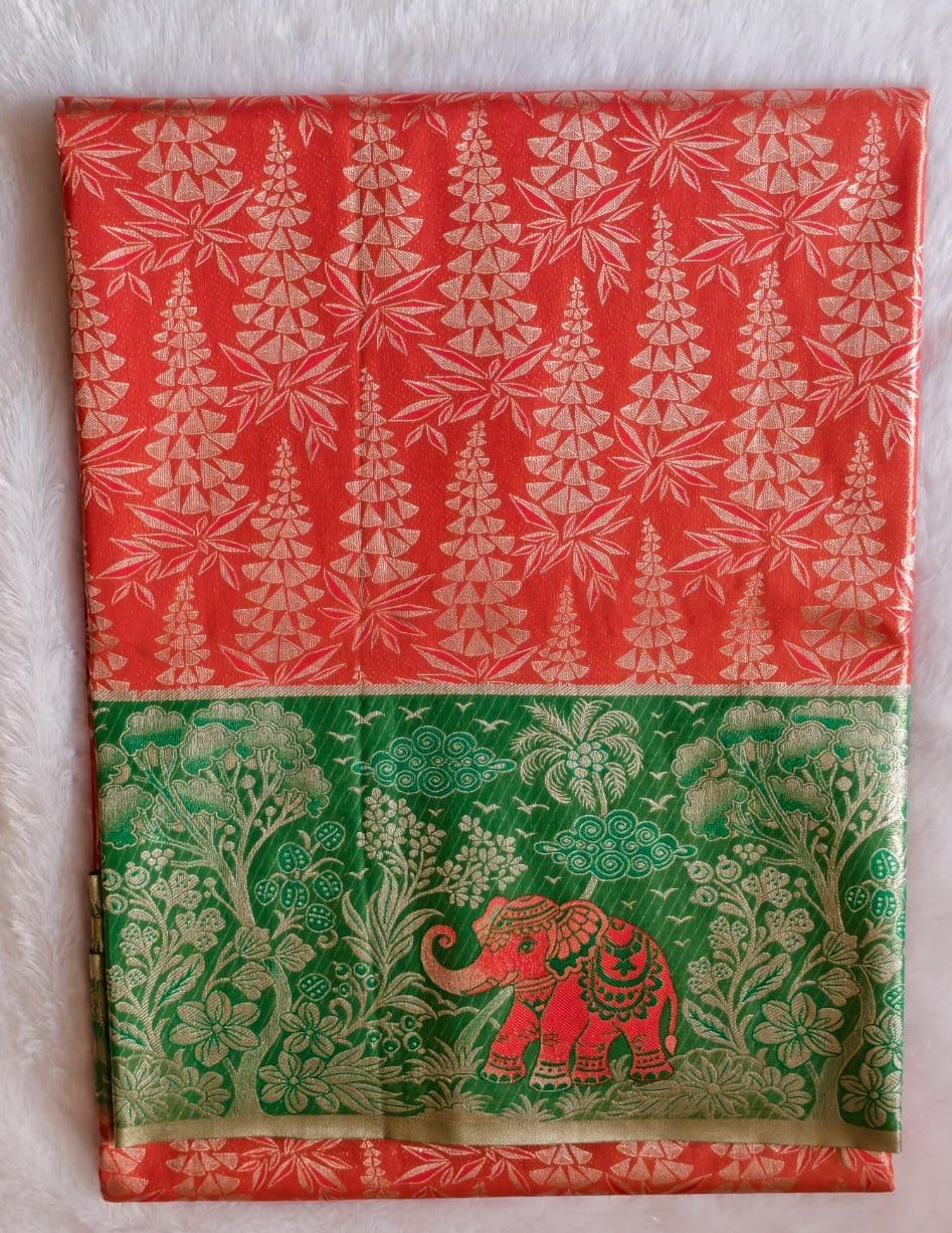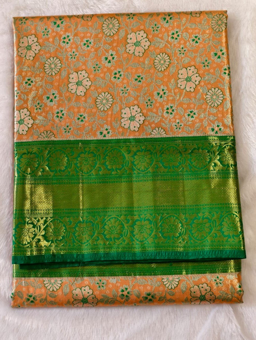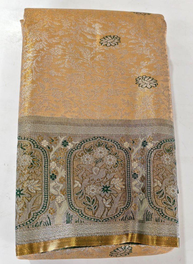 Elegent Gold beige with green contrast kanchipuram imitation saree