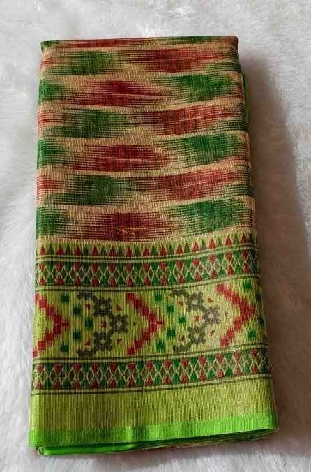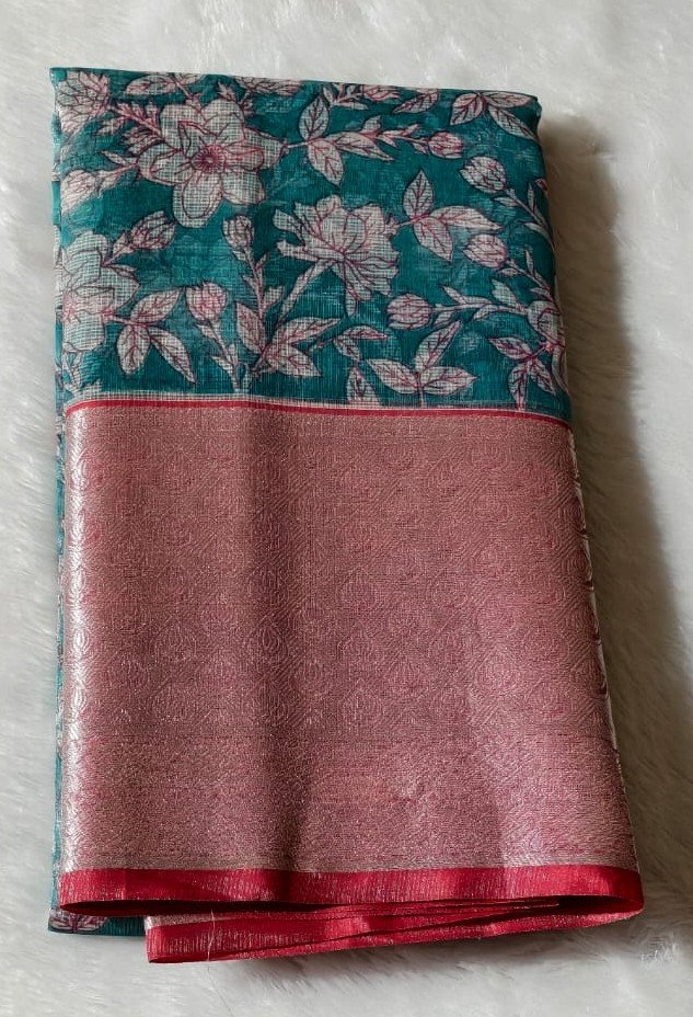 ELEGANT TEAL GREEN AND RED COMBINATION SOFT PAPER SAREE
