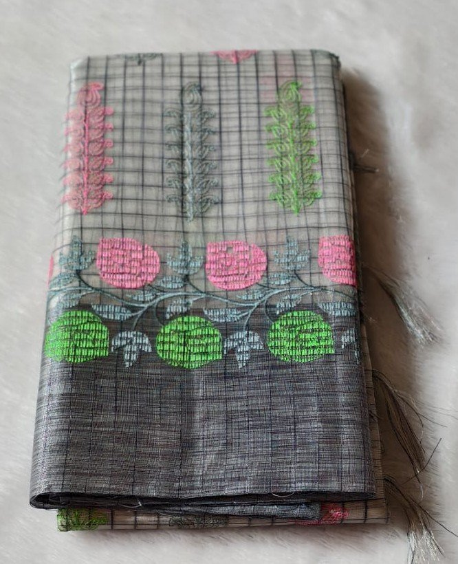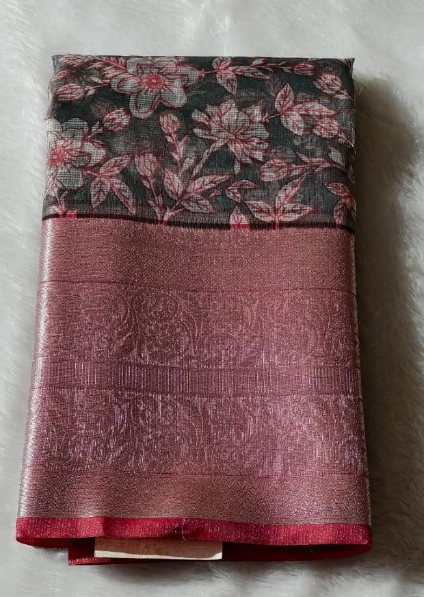 ELEGENT GREY WITH RED CONTRAST SOFT PAPER SAREE