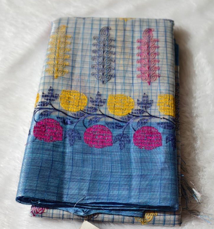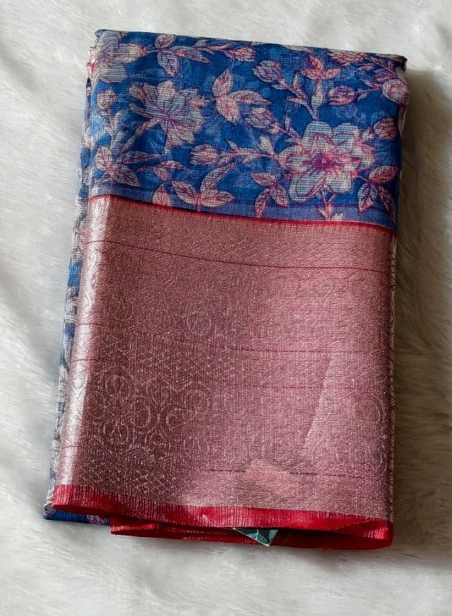 ELEGENT TEAL BLUE SAREE WITH RED CONTRAST SOFT PAPER SAREE