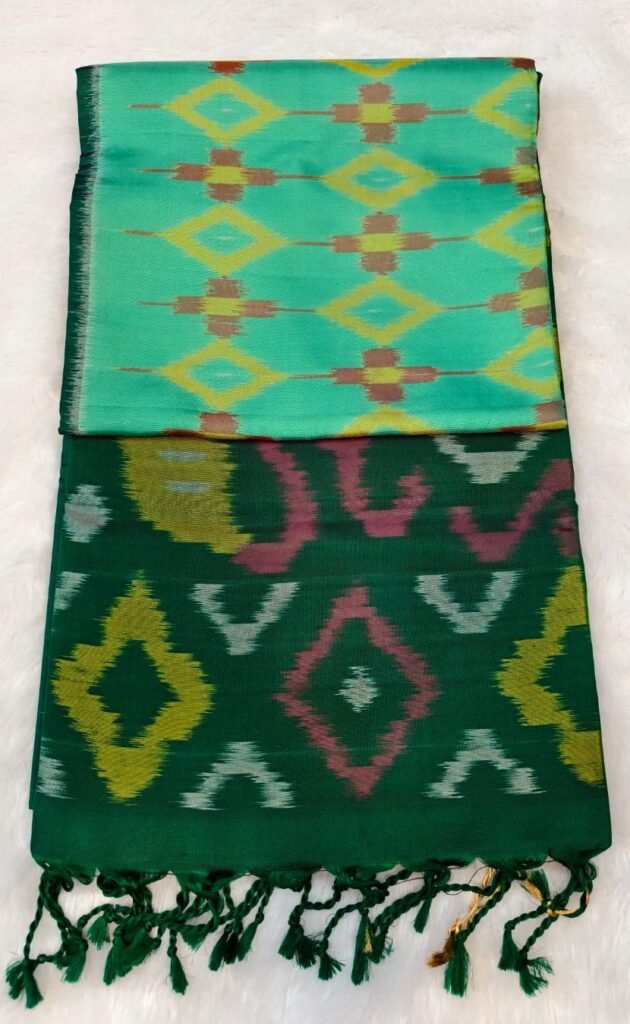 Be the first to review “Elegent soft silk pure resham pochampally lightweight saree with sea green shade and dark green combination”