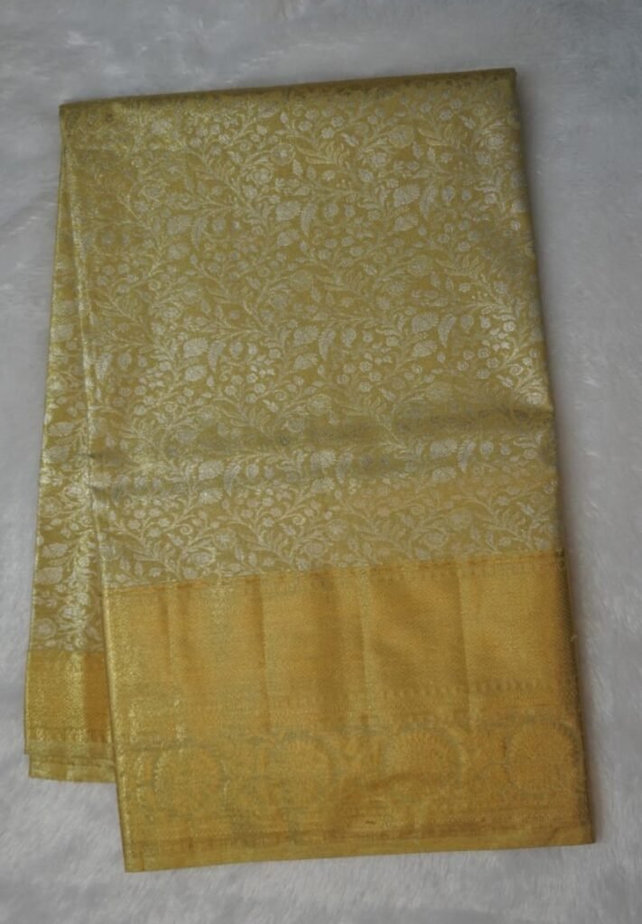 🌟 Golden Yellow tone with a subtle metallic shine, giving the saree a classy, royal, and timeless appearance.